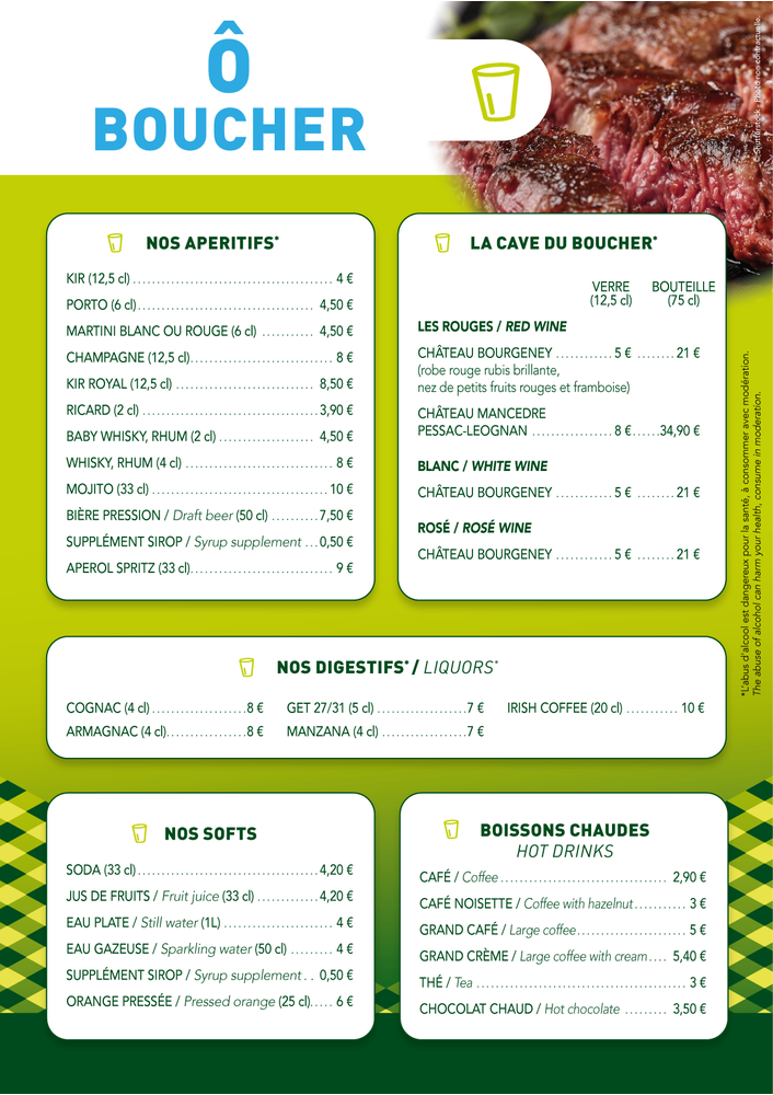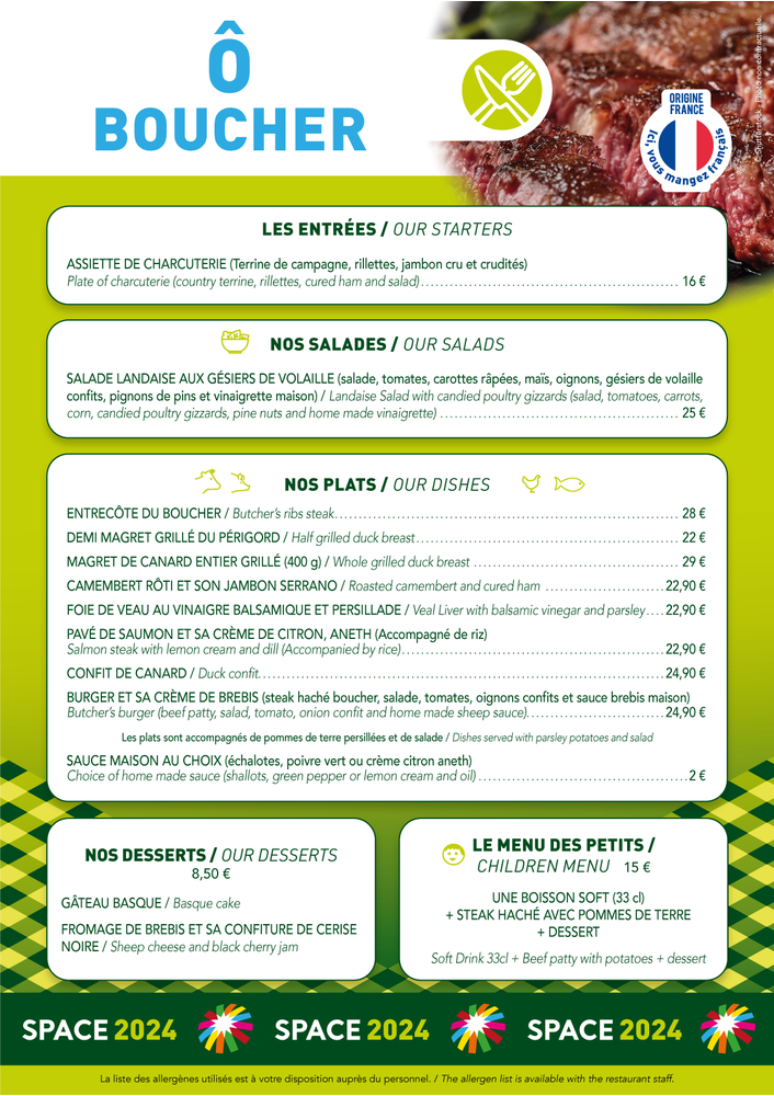 - Plats à l'assiette (veau, cochon, boeuf, canard...)